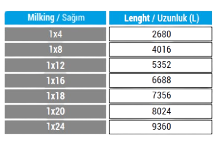 4 – 8 – 12 – 16 – 18 – 20 – 24 baş hayvanın aynı anda sağımını yapabileceğiniz gruplar halinde üretilmektedir